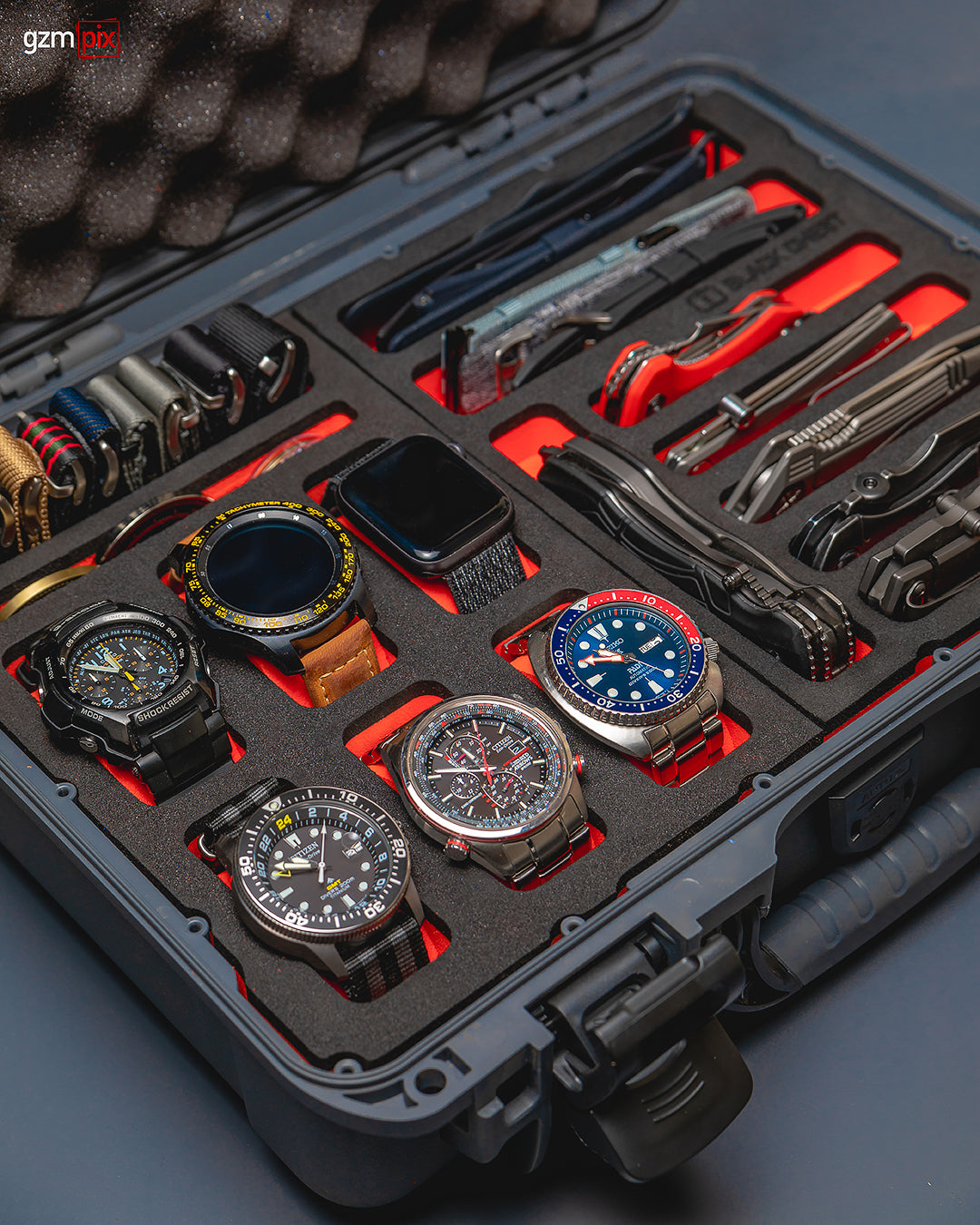 Welcome to the 12WSTR. This is the case you want when you have a larger collection. The 12WSTR has been designed to carry, protect and display up to 12 watches while also allowing you to carry accessories like straps, bracelets, tools, links, spring bars, etc. All your watch needs in a single indestructible case!