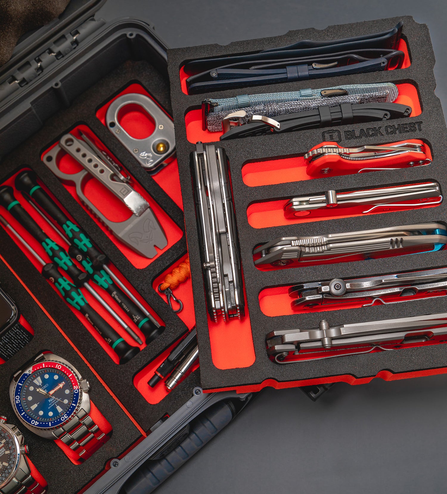 It doesn't matter if you're at home, out with friends, at a watch meet, or camping, if you want your watches and EDC to come with you, there is no better way than a Black Chest case.